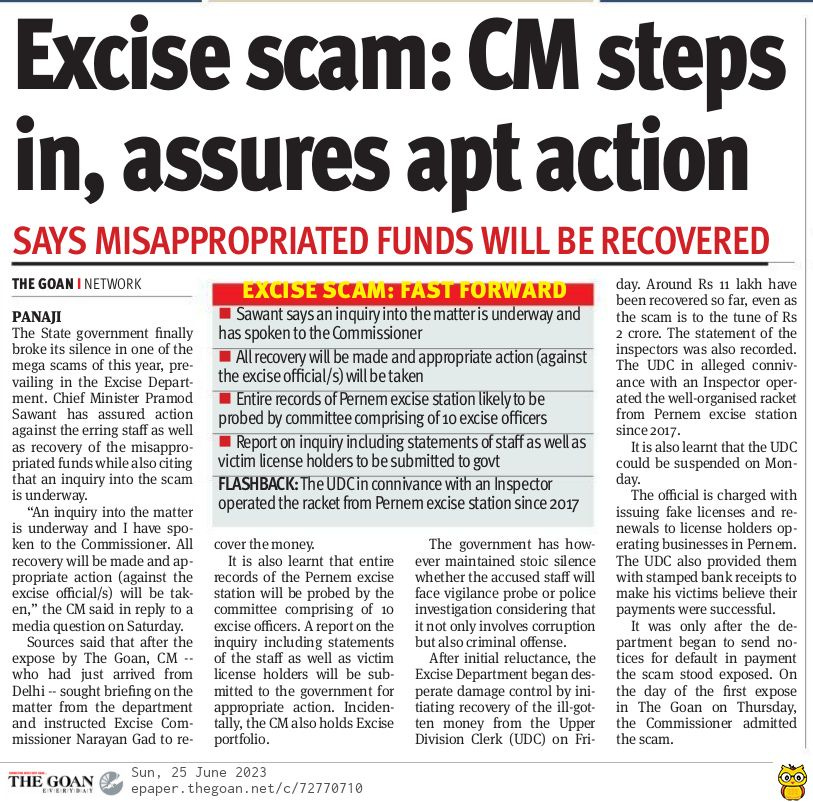 The Excise scam where Inspectors and a UDC Clerk pocketed the money for years, by issuing fraudulent and fake "License Renewal" receipts; selling out the liquor seized in open market, by showing considerable lesser quantity actually; has come to forth via reports from "The Goan Everyday".