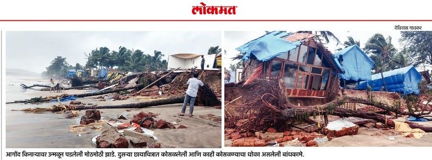PS : Image from today’s edition of newspaper ‘Lokmat’ about the destruction of beach front of Agonda beach in Canacona, at South Goa due to heavy rains and rising sea-water levcels.