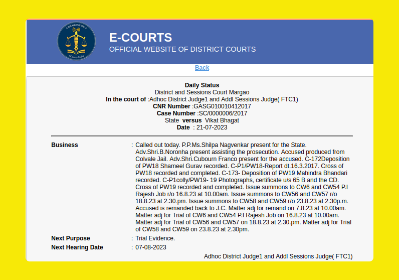 All this was not happenstance. It all happened, after the ruling of Hon'ble High Court of Bombay at Goa, instructing the Trial Court, to conclude the trial within a year on 17th July 2023..