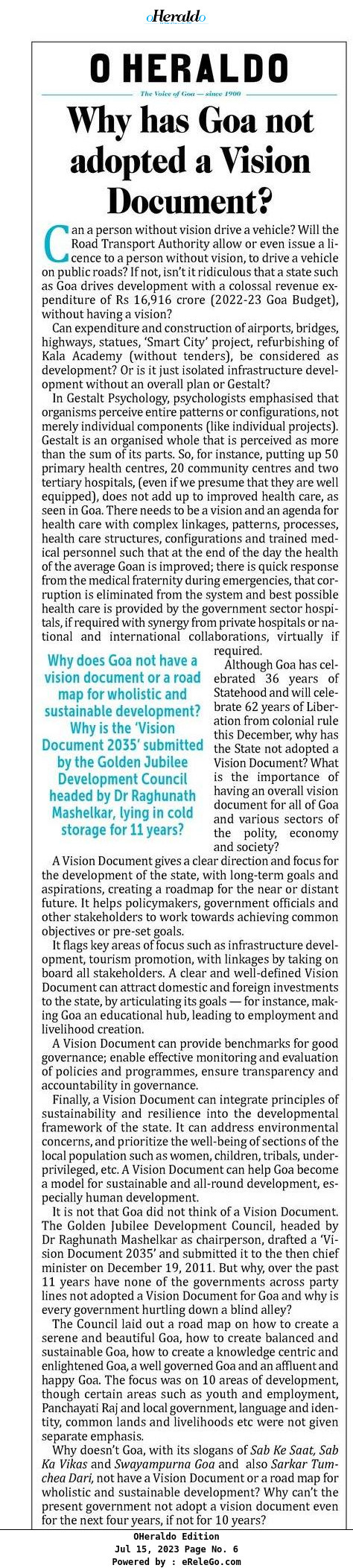 The 99 Goa Daily Vol II : Saturday, 15th July 2023