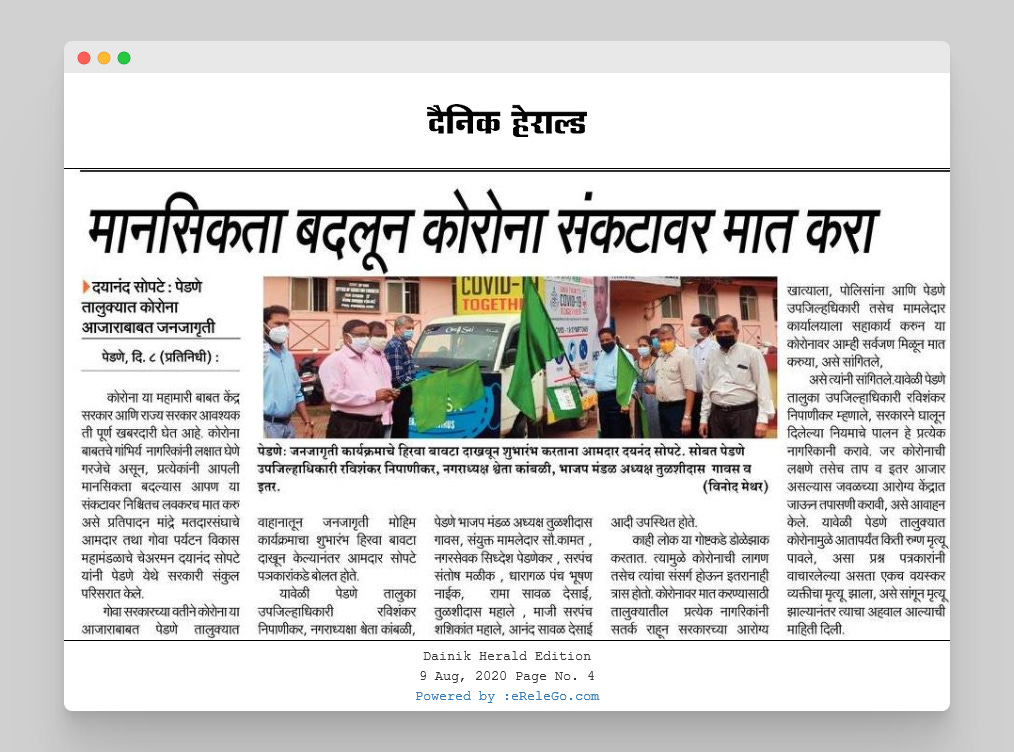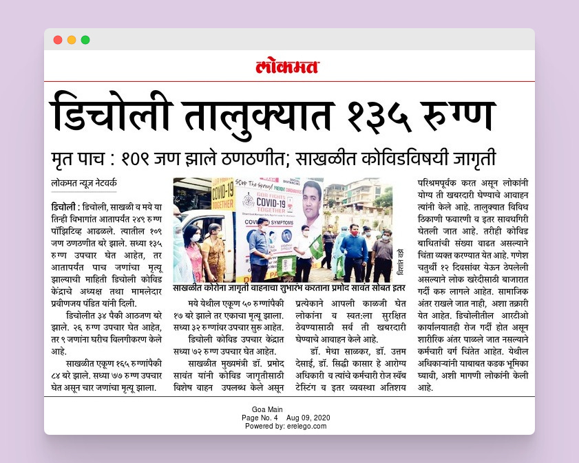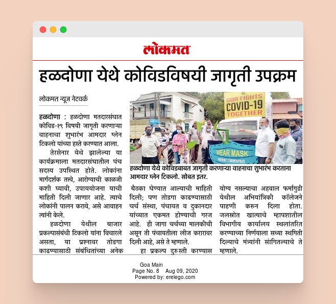 4. Goa government launched a ‘Covid-Van’ which shall blare the information about Covid-19 to inhabitants of Goa, so that people become informed (Finally & Hopefully) on 8th August 2020.