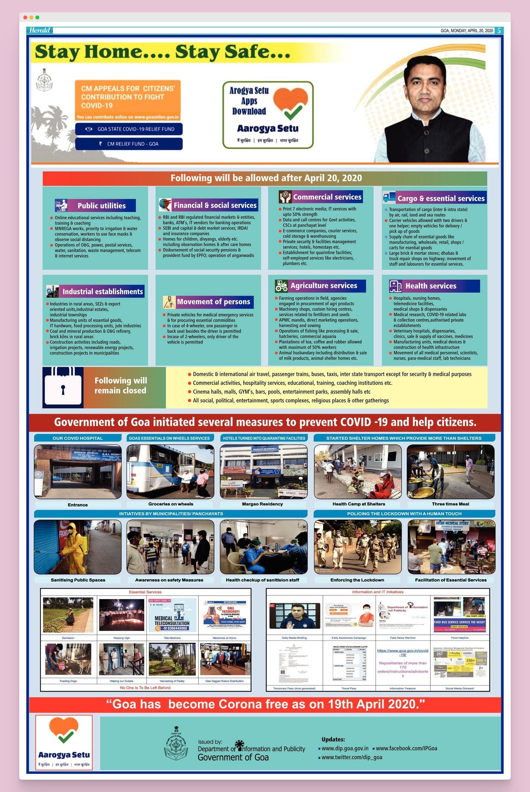 2. On 19th April 2020, The Chief Minister of Goa declared with all pomp and show that "Goa is Corona Free".