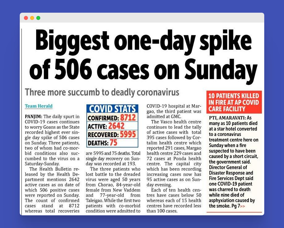 3. The 1st death (Officially) in Goa due to Covid-19 was recorded on 21st June 2020.