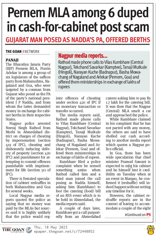 By all means, it is possible that conman, saw the video or read about it, while doing his reccee, and decided to target Pravin Arlekar; after alll, someone who does not have the Dy.Collector's mobile number available with him, after 1 year being a MLA (who is supposed to dwell and resolve the woes of his constituency), would have no clue about who is the PA of BJP Chief JP Nadda; and would be dumb enough for sure, not to even make a query regarding it.